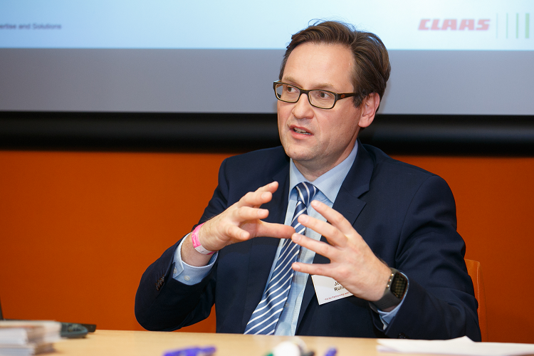 Йорг Рюле розкрив тему “Industry 4.0 у сільському господарстві. Ефективність завдяки дигіталізації”. Німецький експерт показав різницю між Industry 4.0 та Farming 4.0, на прикладі Німеччини презентував цифровий розвиток сільського господарства, порівняв структуру с/г підприємств в Україні та Німеччині, показав статистику опитування щодо готовності німецьких фермерів до дигіталізації, презентував можливості сенсорної техніки для обробки верхнього шару ґрунту та автоматизації документування процесів.