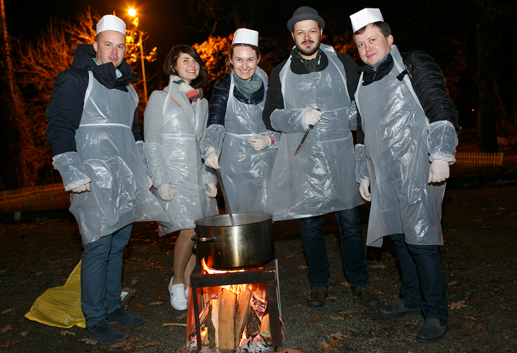 Після насиченого дня НеКонференції відбувся кулінарний нетворкінг, під час якого учасники разом готували борщ, плов та барбекю, а потім дружньо все дегустували 🙂