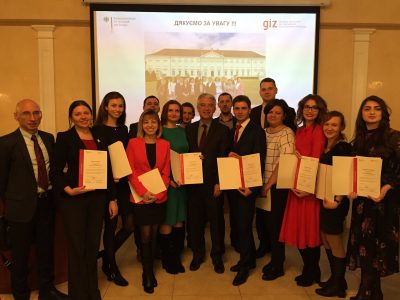15 листопада 2018 року відбулось урочисте вручення сертифікатів випускникам Програми для державних службовців Уряду України. Протягом 8 місяців 15 представників різних міністерств та відомств України брали участь в інтерактивних тренінгах, а також пройшли тижневе стажування в Берліні. Учасники розповіли про безперечну користь від участі у такій Програмі, про нові знання та ідеї. Андрій... Read More