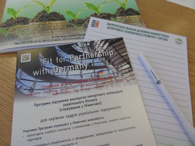 09 та 10 квітня у Луцьку за підтримки партнера Програми, Волинської ТПП, були проведені Дні Програми "Fit for Partnership with Germany ". В перший день проходила бізнес-майстерня "Як знайти партнера в Німеччині". Учасники ознайомились з алгоритмом та інструментами пошуку партнерів в Німеччині: існує багато спеціалізованих порталів та бізнес-каталогів, сайти ТПП та галузевих об'єднань, каталог учасників... Read More